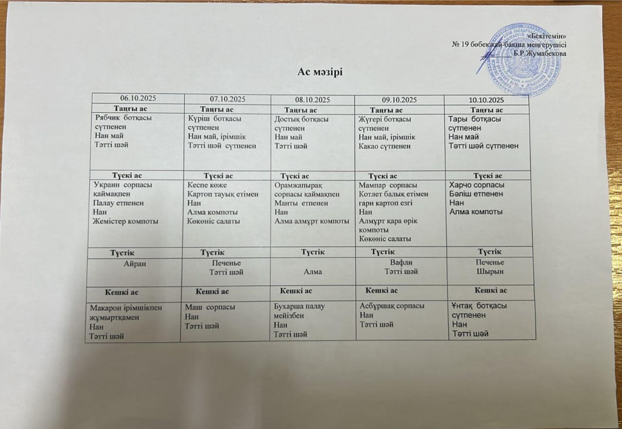 Қазан айы 2025 жыл. Бес күндік ас мәзірі