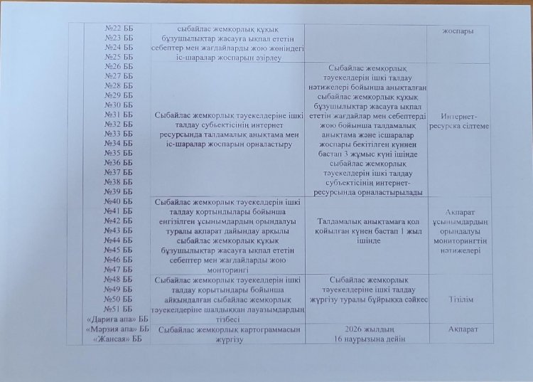 Сыбайлас жемқорлық тәуекелдеріне ішкі талдау жүргізу туралы бұйрық пен жоспар БІЛІМ БӨЛІМІ » №19 бөбекжай-бақшасы