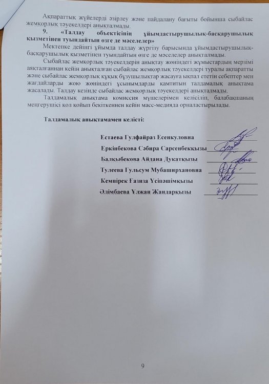 » » Сыбайлас жемқорлық тәуекелдеріне ішкі талдау нәтижелері туралы талдамалық анықтама