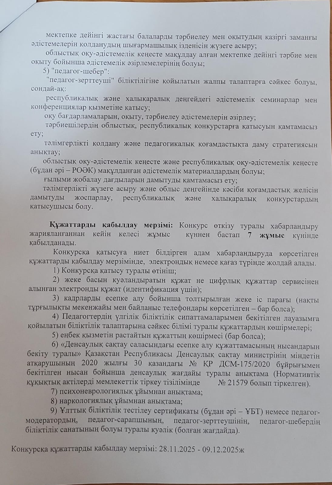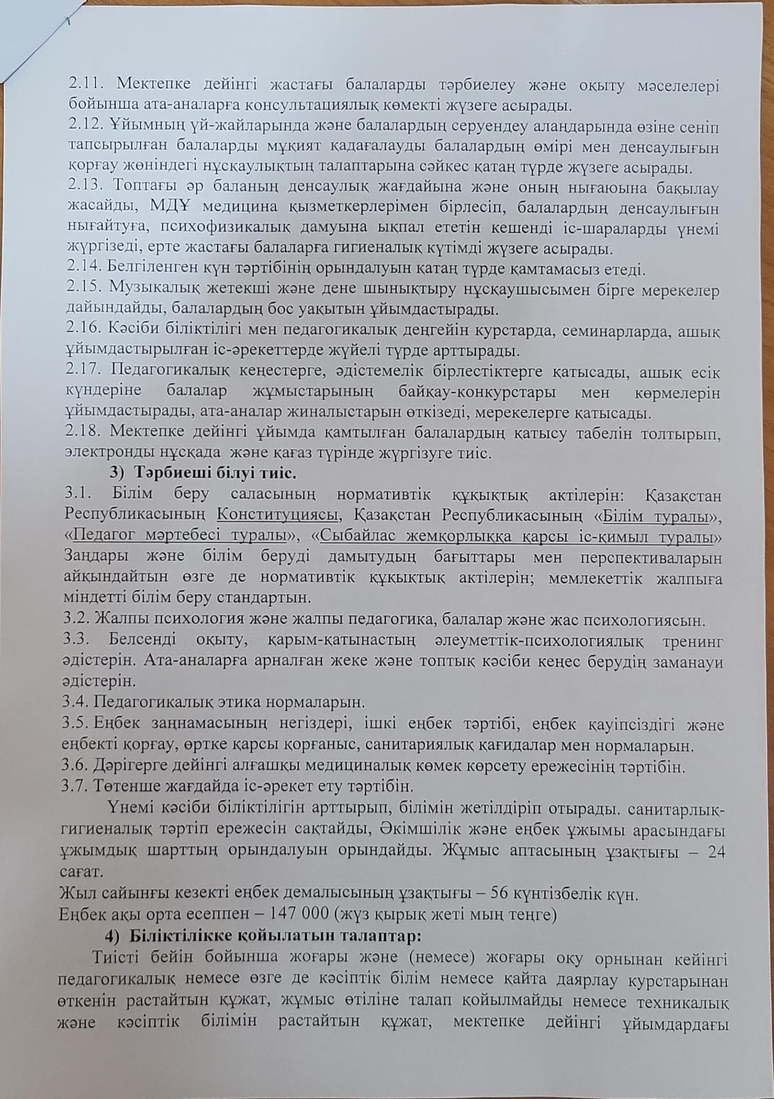 » » Тәрбиеші бос лауазымға тағайындау конкурсы өткізілетінін хабарлайды.